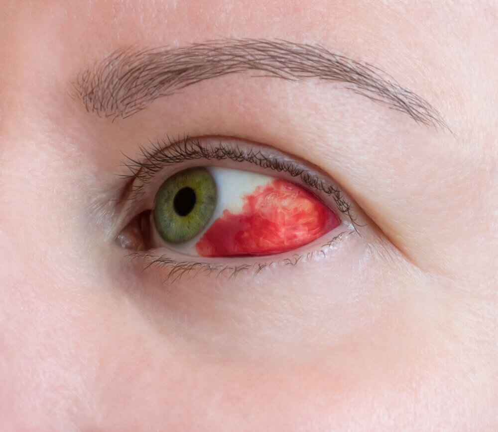 If for any reason one of the blood vessels under the conjunctiva hemorrhages, the blood from the hemorrhage is trapped under the conjunctiva. This trapped blood is the redness you see when you have a subconjunctival hemorrhage.